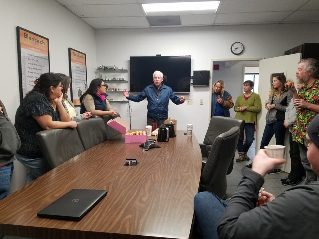 Over the years, John became the mentor for so many. Including, Jack Sloane, Research and Development Manager. “John Lennox has been one of my major sources of mentorship and inspiration. He creatively bridged the fields of mechanical design and applications engineering and brought extensive experience and pragmatism to defining problems and applying engineering principles to real world food processing challenges. He was always generous with his time and knowledge, imparting these skills to the larger team. Being under his wing for much of my 8 year tenure with Blentech has provided me with confidence and a solid foundation. He’ll be missed around here, but his influence and legacy will be long lasting.”