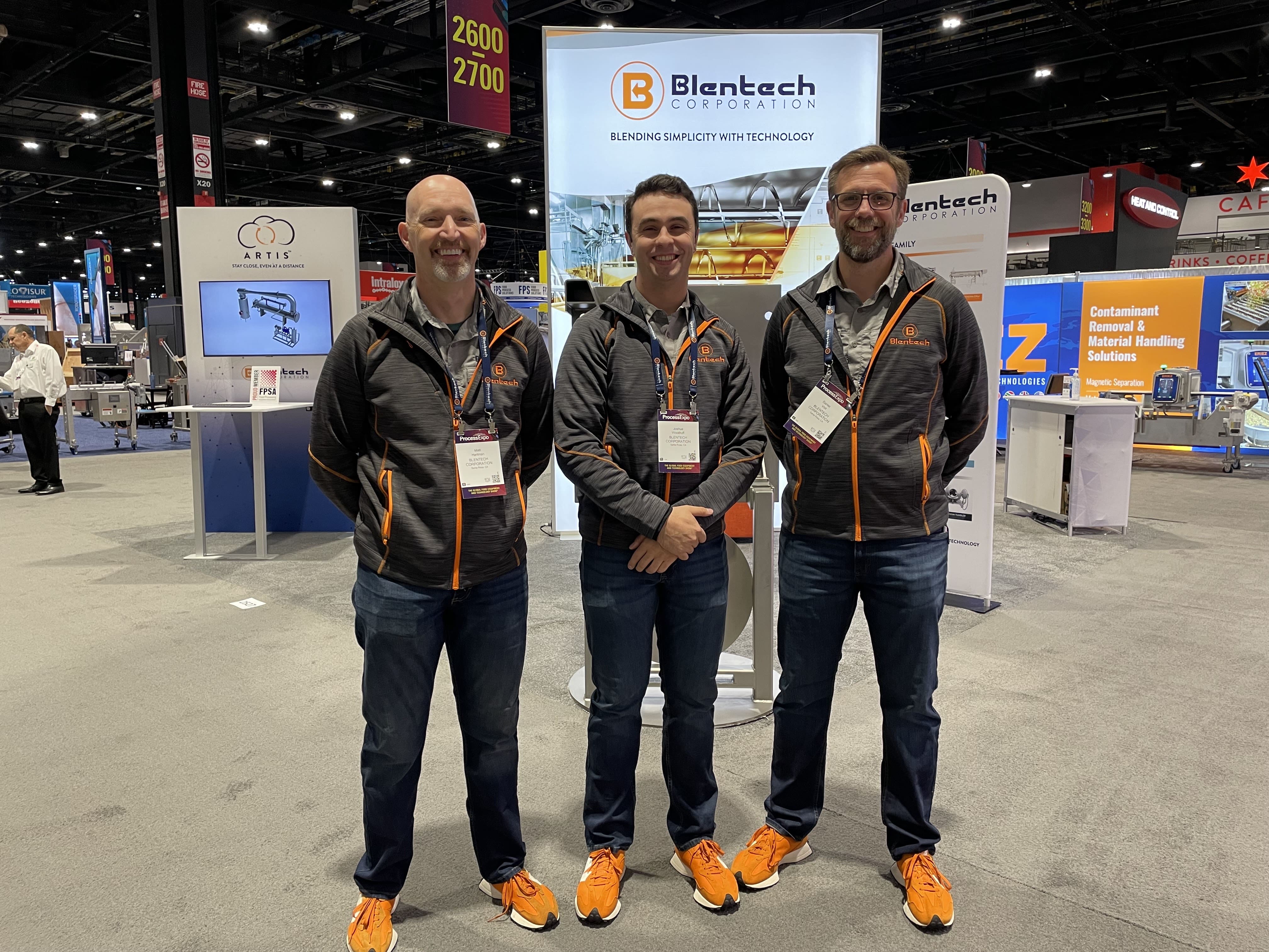The Blentech team had a great time at the Process Expo show in Chicago this week. Team members (pictured L to R) Matthew Hartman (National Sales Manager – USA) , Joshua Woodruff (Sales Specialist), and Daniel Voit (CEO) were easy to spot on the show floor with their iconic orange shoes.