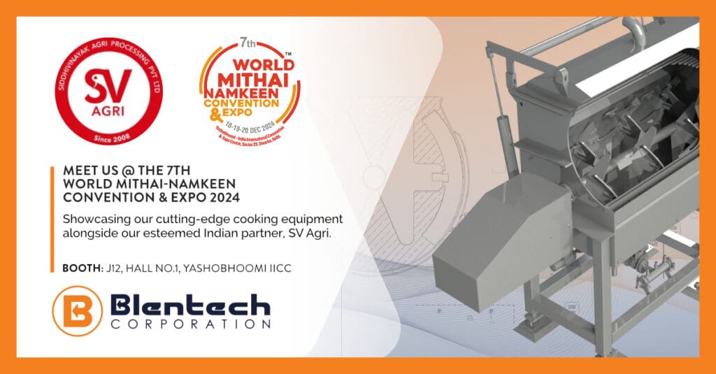 We’re excited to introduce Blentech’s innovative solutions to the world of Indian cuisine. Our advanced cooking technology is designed to address the unique challenges of traditional dishes like curries and prepared snacks, offering a precise, efficient, and cost-effective alternative to conventional kettle cooking. Visit Dan and Jeffrey from Blentech at the World Mithai Namkeen Convention…